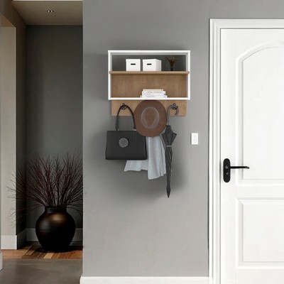 Dexmalle White Entryway Wall Mounted Coat Rack with 4 Dual Hooks