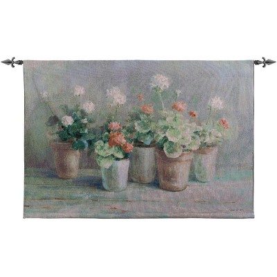 Manual Woodworkers and Weavers "Farmhouse Geraniums Grande" Tapestry Wall Hanging, 36 x 50 Inches, Woven Cotton Wall Art with Floral Garden Theme