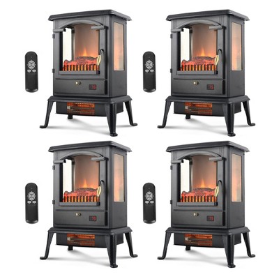 VOLTORB 3-Sided Flame View Infrared Quartz Heater Stove, Free Standing Electric Fireplace for Indoor Use w/Remote & Programmable Timer (4 Pack)