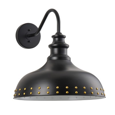 Dewdrop Outdoor Wall Light, Industrial Farmhouse Black Barn Style Wall Sconce with Metal Dome Shade for Porch Garage