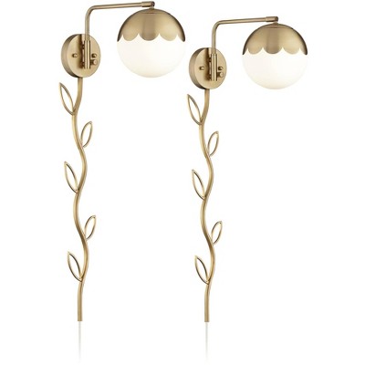 360 Lighting Kelowna Modern Swing Arm Wall Lamps Set of 2 with Cord Cover Brass Plug-in Light Fixture Glass Globe Shade for Bedroom Bedside Reading