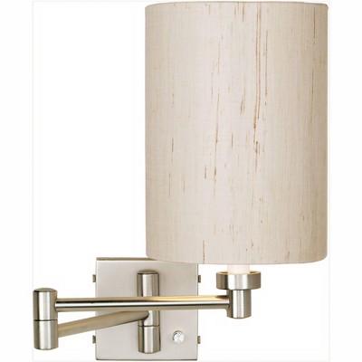 Possini Euro Design Tesoro Modern Swing Arm Wall Lamp with LED Reading Arm Brushed Nickel Plug-in Light Fixture Off White Drum Shade for Bedroom Home
