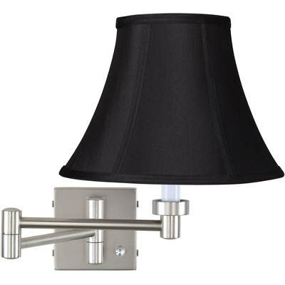 Possini Euro Design Modern Swing Arm Wall Lamp Brushed Nickel Plug-In Light Fixture Black Bell Shade for Bedroom Bedside Reading