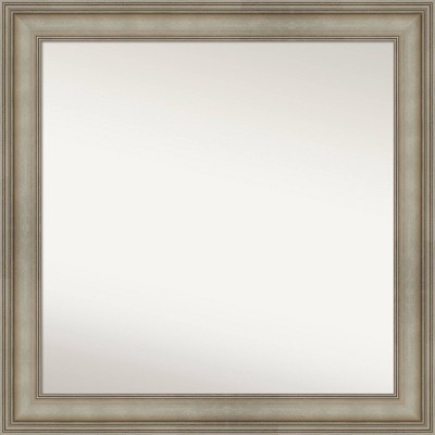 32" x 32" Non-Beveled Mezzanine Antique Silver Narrow Wood Wall Mirror - Amanti Art: Modern Square, Includes Mount Hardware