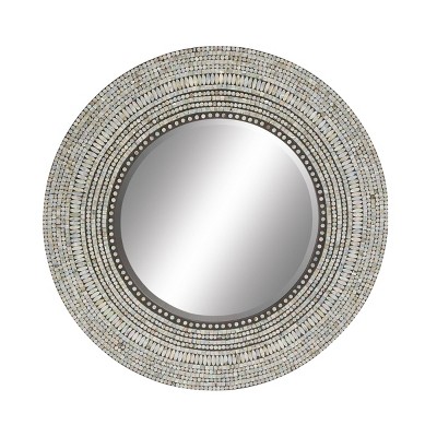 Olivia & May 30"x36" Mango Wood 1 Shelf Wall Mirror with Silver Beaded Outline Light Brown: Round Mirror for Hallway Decor