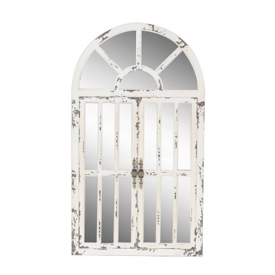 Farmhouse Wood Window Panes Inspired Wall Mirror with Arched Top and Distressing White - Olivia & May