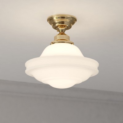 VAXCEL Huntley 12-in W Satin Nickel Farmhouse Schoolhouse Semi Flush Mount Ceiling Light White Glass