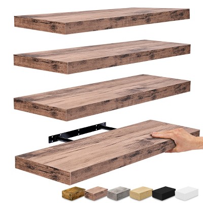 Floating Shelf Wall Mounted Hidden Brackets Rustic Wood - InPlace