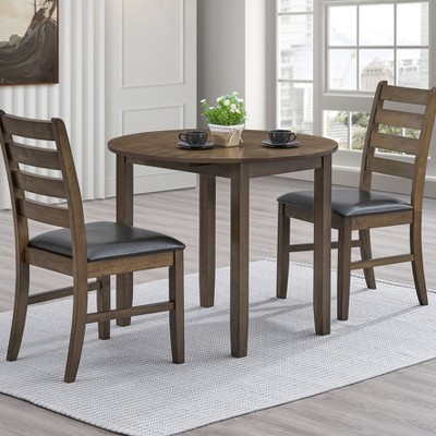 ChicFurnit Dining Set Modern 3 Piece Kitchen Dining Set with Drop Leaf Table and 2 Upholstered Chairs for Dining Room, Brown, 38.75"*32.75"*6.3"