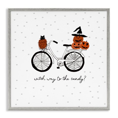 Stupell Industries Halloween Witty Calligraphy Patterned Pumpkins Cat Bicycle Framed Giclee Art, Gray, 24" x 24"