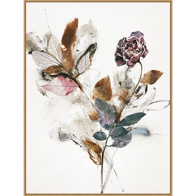 32" x 42" Playing Flower 1 by Design Fabrikken Framed Canvas Wall Art Print - Amanti Art: Contemporary Botanical Painting, Light Brown