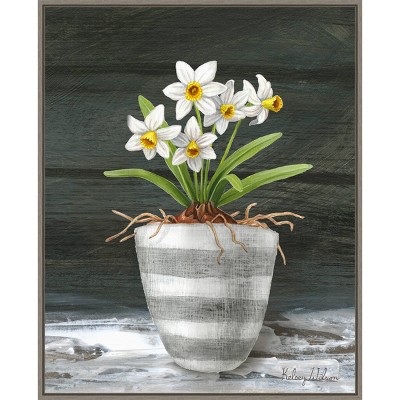 23" x 28" Farmhouse Garden II White Daffodils by Kelsey Wilson Framed Canvas Wall Art Print - Amanti Art: Contemporary Nature Painting