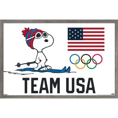 Trends International Team USA x Peanuts – Snoopy Cross-Country Skis Framed Wall Poster Prints