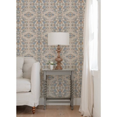 RoomMates Medallion Floral Peel and Stick Wallpaper Taupe: Removable Vinyl, Self-Adhesive, Botanical Pattern, 30.8 Sq Ft Coverage
