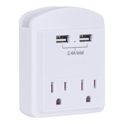 Itopfox Outlet Extender with 2 AC Outlets & 2 USB Ports, Wall Mounted Plug Adapter for Cruise Travel, Non Surge Protector, ETL Listed, White