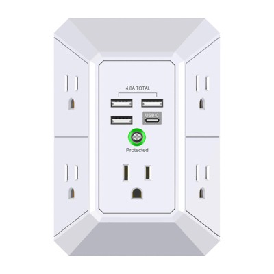 Itopfox Wall Charger with Surge Protection, 5 Outlet Extender and 4 USB Ports (4.8A Total) 3-Sided Power Strip for Home, Travel, Office