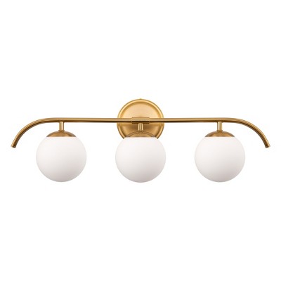 DORESshop 24 in. 3-Light Brass Vanity Light Fixture with Frosted Glass Globes Modern Wall Sconce for Bathroom, Mirror, and Hallway