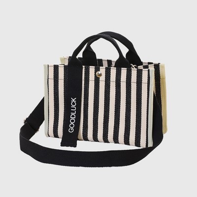 Anna-Kaci Women's Striped Canvas & Nylon Tote Bag - Multi - functional Shoulder Bag