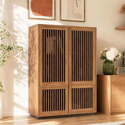 Gaoyangjiaju 47.5" Modern Storage Cabinet with 4 Push-to-Open Slatted Doors, Walnut Minimalist Freestanding Bookshelf Organizer