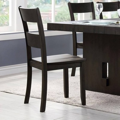 Gulches Dining Chairs Set of 2 Deep Walnut Brown Key-design Solid Wood White Round PU Cushion for Kitchen Dining Room