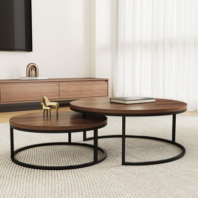 Gaoyangjiaju 31.5" Modern Round Nesting Coffee Table Set of 2 - Industrial Circular Center Tables for Living Room - Walnut/Black