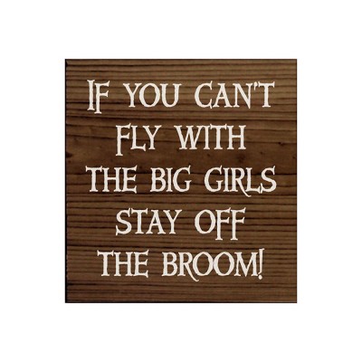 Slickblue Funny Witch Quote Wood Sign – “Stay Off the Broom” Saying, 7x7 Rustic Knotty Pine Wall Art