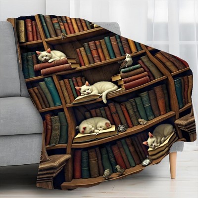 Lomsoe 1pc Bookshelf Cat Blanket - Suitable for Home, Office, - Lightweight Warm Bedspread for Cozy Contemporary Bedding with Bookshelf.