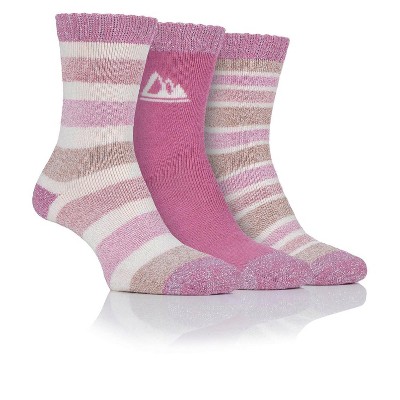 Memoi Women's Stripe Cozy Warm Thermal Crew Socks Pink 9-11