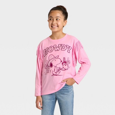 Girls' Howdy Snoopy Fleece Fringe Long Sleeve T-Shirt - Light Pink
