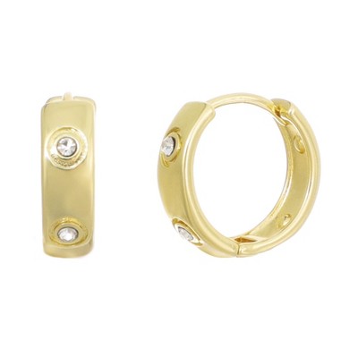 Adornia 14k Gold Plated CZ-Dotted Hoop Earrings