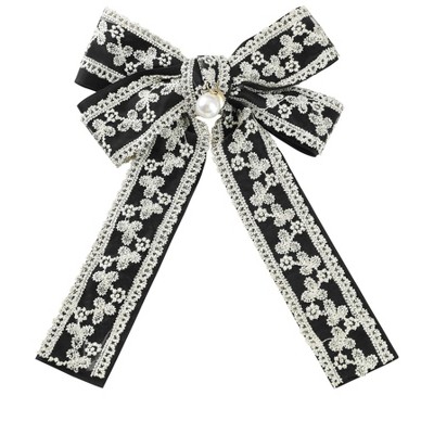 INSPIRE CHIC Women's Ribbon Lace Brooch Bow Vintage Tie Pin Clip Bow Tie with Pearls