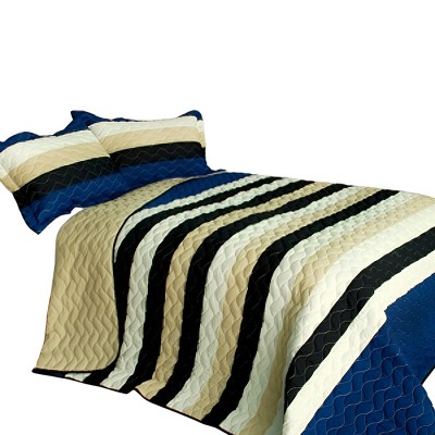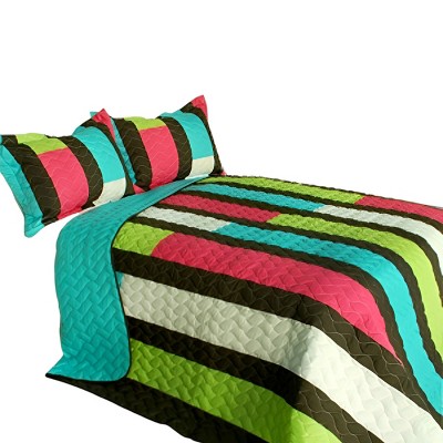 Slickblue 3 Piece Full/Queen, Soft Vermicelli Quilted Quilt and Shams, Quilt Set, Vertical Stripes, 9 Options