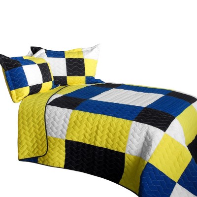 Slickblue Handmade Patchwork Quilt Set, Vermicelli Quilted, TC Fabric, Blue/Yellow, Full/Queen, 3pc