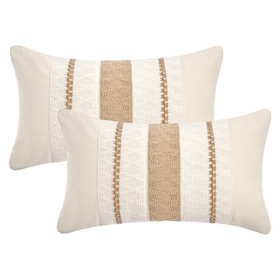 - textured linen striped throw pillow neutral