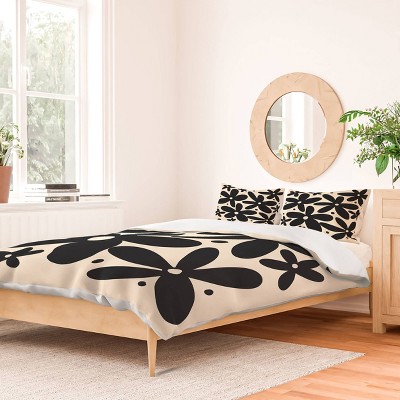 Deny Designs Full/Queen Angela Minca Abstract Monochrome Daisies Duvet Cover and Pillow Sham Set Beige: Woven Polyester, 300 Thread Count, Zip Closure