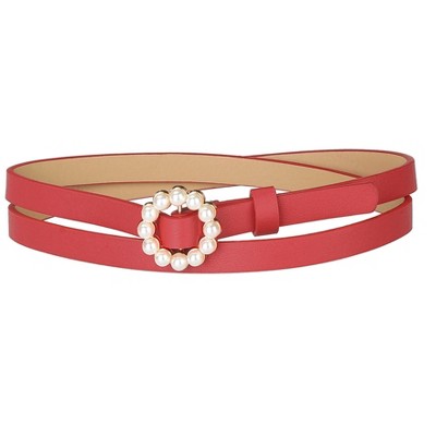 Allegra K Women's Pearl Narrow Faux Leather Jeans Dresses Pants Adjustable Waist Belts 105cm/41.33"