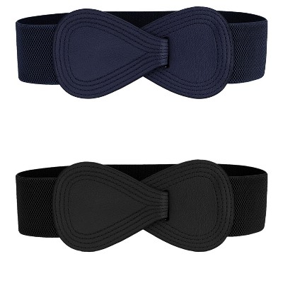 Allegra K Women's Elastic Interlock Buckle Stretchy Waist Belts for Dress 2 Pcs