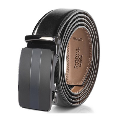 Roxoni Men's Genuine Leather Ratchet Dress Belt with Automatic Double Gloss Buckle, Enclosed in an Elegant Gift Box