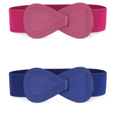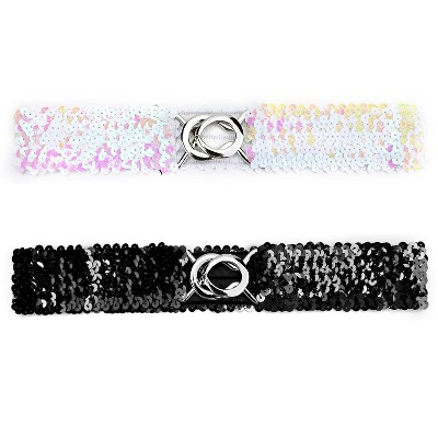 Allegra K Women's Sequins Elastic Interlocking Buckle Waist Belt 50-75cm/19.68-29.52" 2Pcs
