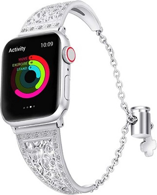Worryfree Gadgets Slim Metal Band for Apple Watch 38/40/41mm Bling Rhinestones