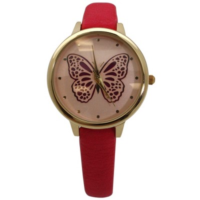 Olivia Pratt Thin Faux Leather Butterfly Face Women Watch