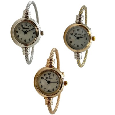 Olivia Pratt 3-Pack Fashion Analog Bangle Cuff Wrist Bracelet Wire Bangle Women Watch