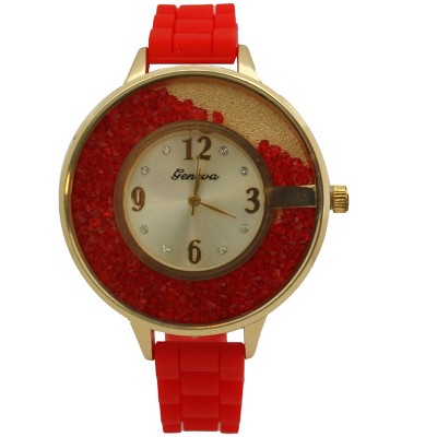 OLIVIA PRATT FLOATING COLORFUL STONES SILICONE STRAP WATCH