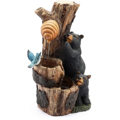 LuxenHome 21.9" H Bear and Honey Beehive Tree Resin Outdoor Fountain with Lights Brown