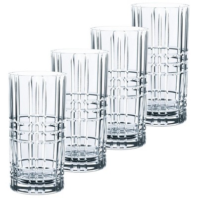 Nachtmann Square Collection Long Drink Glasses – Set of 4 Lead-Free 15 oz Crystal Tumblers, Geometric Cut Design, Tall Barware