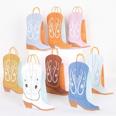 Sparkle and Bash 24 Pack White and Rose Gold Party Bags for Candy, Small Gifts, Metallic Rose Gold, 4 Designs, 7.9 x 5.5 x 2.5 In