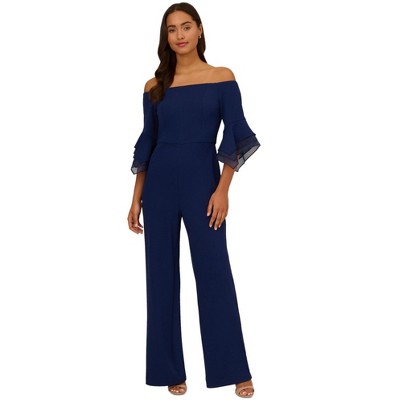 Adrianna Papell Womens Organza Crepe Jumpsuit