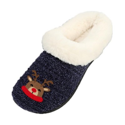 Roxoni Women’s Cozy Faux Fur Slippers with Indoor Outdoor Sole – Festive Holiday Custom Gift Footwear