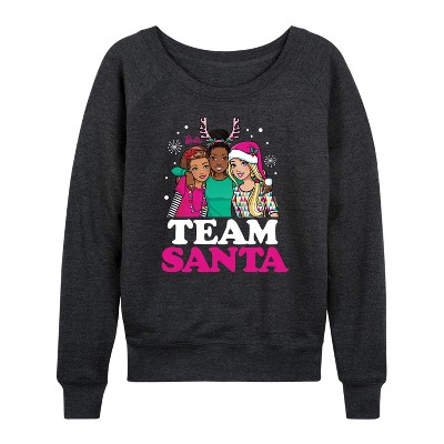 Women's - Barbie - Holidays & Christmas Lightweight French Terry Wide Neck Long Sleeve Graphic Shirt