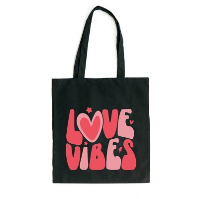 City Creek Prints Love Vibes Stars Canvas Tote Bag - 15x16 - Black